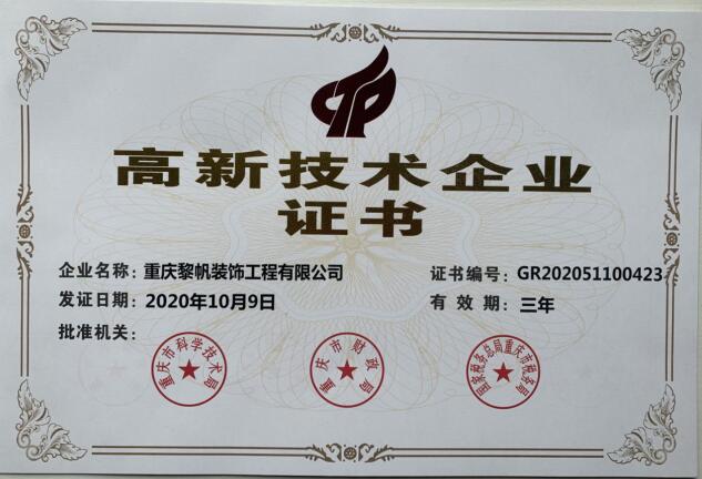 高新技術企業證書
